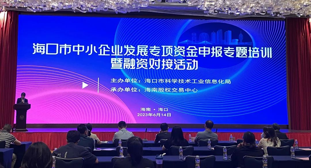 6月14日上午,由海口市科工信局主辦、海南股交承辦的海口市中小企業發展專項資金申報專題培訓暨融資對接活動在海口舉辦。2023年中小專項發展資金的獎勵方向涵蓋貸款貼息、擔保體系建設、專精特新、“小巨人”的獎勵...