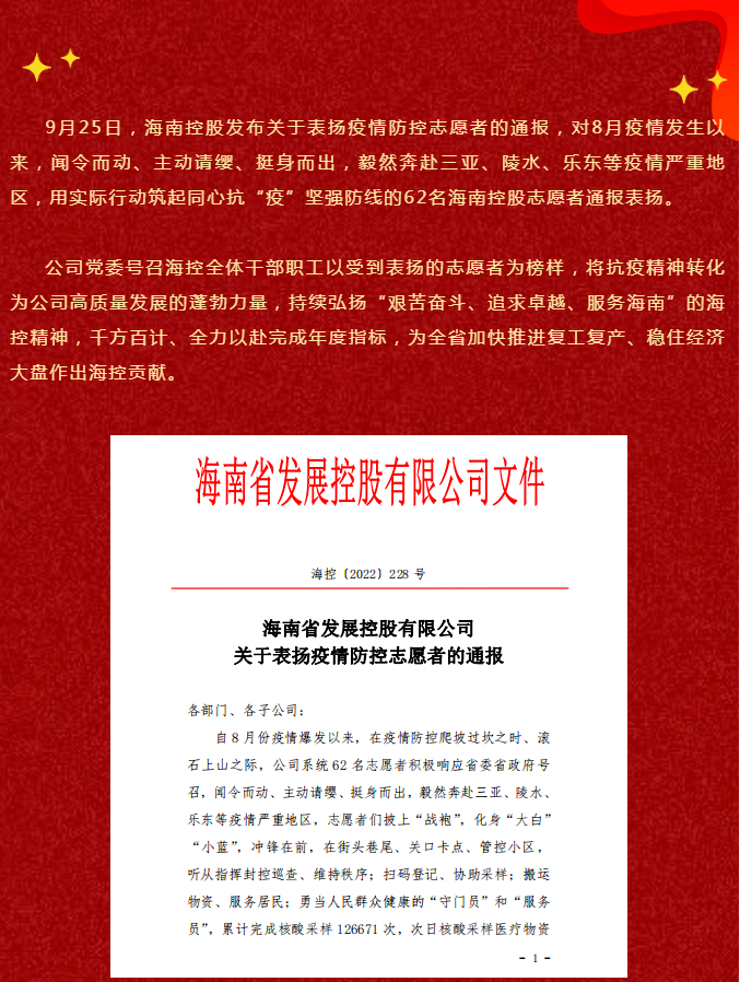 編者按:疫情就是命令,防控就是責任。面對8月份突如其來的疫情,海控志愿者積極響應省委省政府和公司黨委的號召,聞令而動、不畏艱險、向“疫”而行。他們脫下工服,披上“戰袍”,化身“大白”“小藍”,化身群眾...