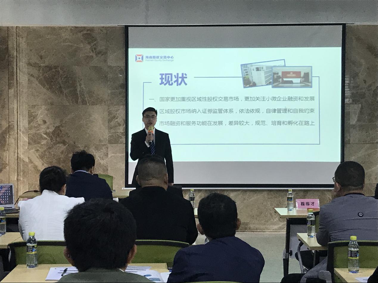 12月8日上午,海南股權交易中心舉辦掛牌企業舉辦業務培訓交流會,共有30余家掛牌企業代表參與。股交中心執行總經理程棟才為在場的企業代表介紹了區域性股權市場的發展現狀、股交中心服務中小微企業的幾大措施、中心...