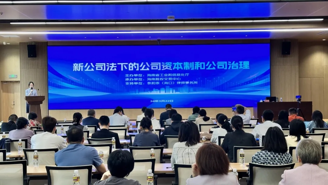 3月22日上午,由海南省工信廳主辦、海南股權交易中心承辦的“新《公司法》下的公司資本制和公司治理”專題培訓在海口舉辦。本次培訓旨在幫助我省中小企業掌握新公司法在公司資本制和公司治理方面的具體內容和操作要...