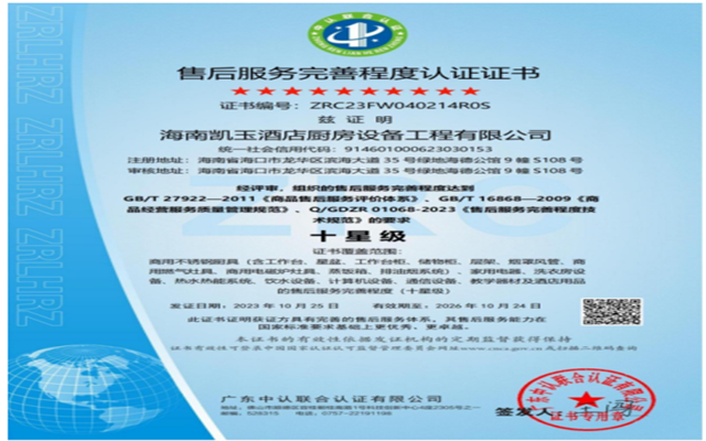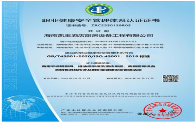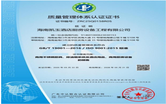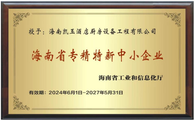 海南凱玉酒店廚房設備工程有限公司(以下簡稱凱玉廚具或我司)成立于2013年,注冊資金2800萬,地處海南省??谑小v經多年發展,已在海南股權交易中心上市,是海南省行業中率先獲得十星級售后服務證書,通過ISO9001:2015質量管理體系認證、ISO14001:2015環境管理體系認證、GB/T45001-2020職業健康安全管理體系認證、AAA企業信用等級認證、中國安全生產標準化一級企業認證、中國廚房設備工程行業一級認證、燃氣燃燒器具安裝維修能力一級認證、采用國際標準認證并由政府部門審查頒發證書的企業(詳見專業資質文件),一般納稅人A級信用企業、海南省酒店與餐飲行業協會副會長單位、中國廚具行業十大品牌、中國著名品牌、2021年度中國國際飯店業優質廚房設備供應商推薦品牌、2022年度中國飯店業高質量發展設備供應商品牌、酒店用品與設備供應商等級認證甲級企業、國家高新技術企業、專精特新企業、海南省專精特新中小企業證書。 本公司擁有自主產權辦公大樓、產品體驗中心以及自主生產基地(位于海南省??谑旋埲A區城西鎮蒼嶧二路4號,園區面積達1245平方米,購置行業內一流生產加工設備),擁有多項產品專利技術,創立了椰爐、椰灶兩大爐具自主品牌,主要為大型星級酒店、大型企事業單位、地產公司、餐飲企業等提供專業的廚房設備及排油煙系統供貨、安裝及設計服務。