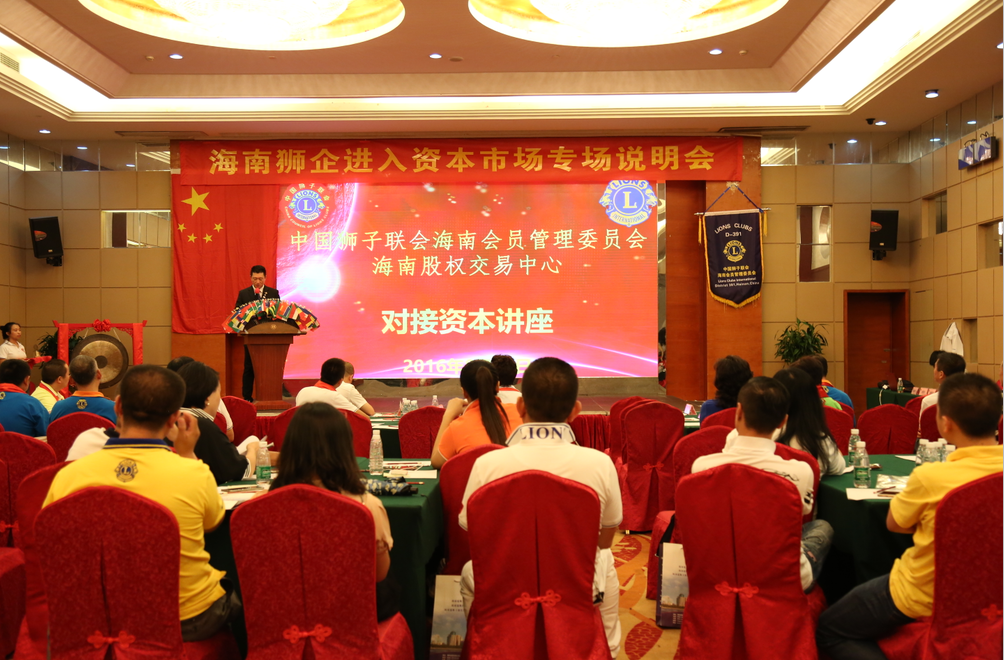 8月20日下午,海南股權交易中心與中國獅子聯合會海南會員管理委員會,在寶發幸福酒店共同舉辦獅子會企業集體掛牌儀式暨資本市場培訓活動。中國獅子聯合會海南會員管理委員會副秘書長于曉彪、海南股權交易中心副總裁程棟才、中國獅子聯合會海南會員管理委員會投融資委員會主席蔣文寧等領導出席活動。獅子會會員、企業代表40余人參加了本次培訓活動。