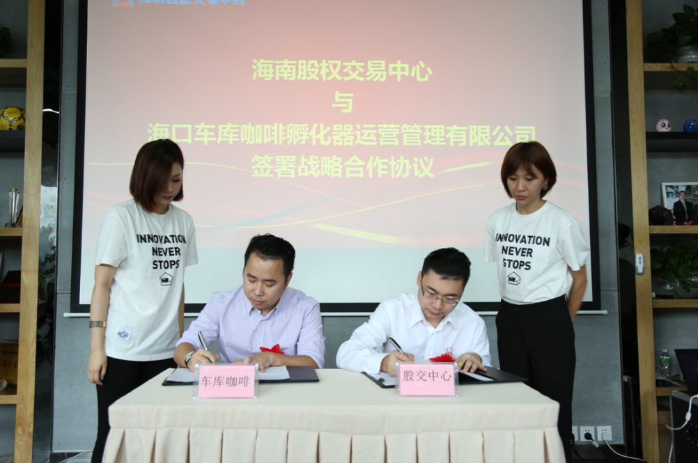 隨后,海南股權(quán)交易中心與海口車庫咖啡共同簽訂了戰(zhàn)略合作協(xié)議,就進(jìn)一步加強合作達(dá)成初步意向。