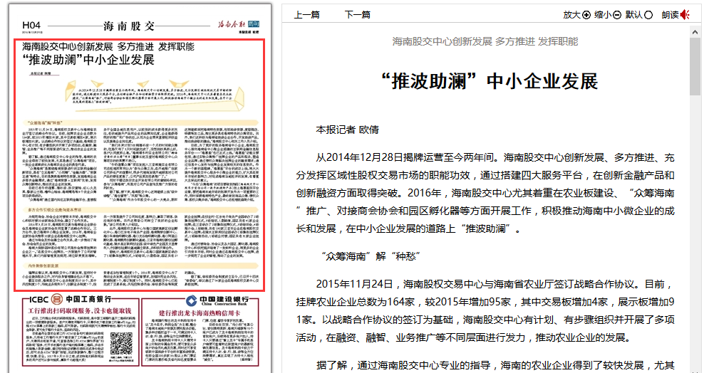 近日,證券導報以兩個版面整版報道海南股權(quán)交易中心兩周年,關注股交中心兩年以來的發(fā)展。