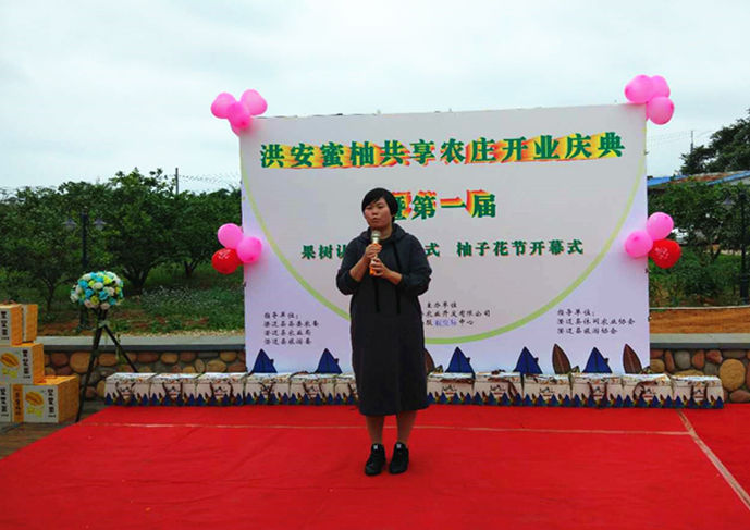 洪安蜜柚果樹認籌者代表現場發言?!拌肿诱?,雖然價格貴,但是因為品質好,口感好,得到許多消費者的認可。”