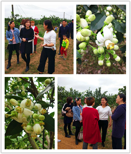 完成果樹掛牌后,“柚子夫婦”安爍宇與黃曉玲帶領認籌者們參觀柚子園,園內潔白的柚子花悄悄盛開,陣陣花香撲鼻,令人心曠神怡。果樹認籌者可以在果樹成長期內隨時享受“春賞花授粉、夏倚樹乘涼、秋品園摘果”的愜意,果樹基地負責照料果樹,認籌者也可帶上親朋好友為果樹澆水、施肥、鏟草、采摘,享受田園樂趣。