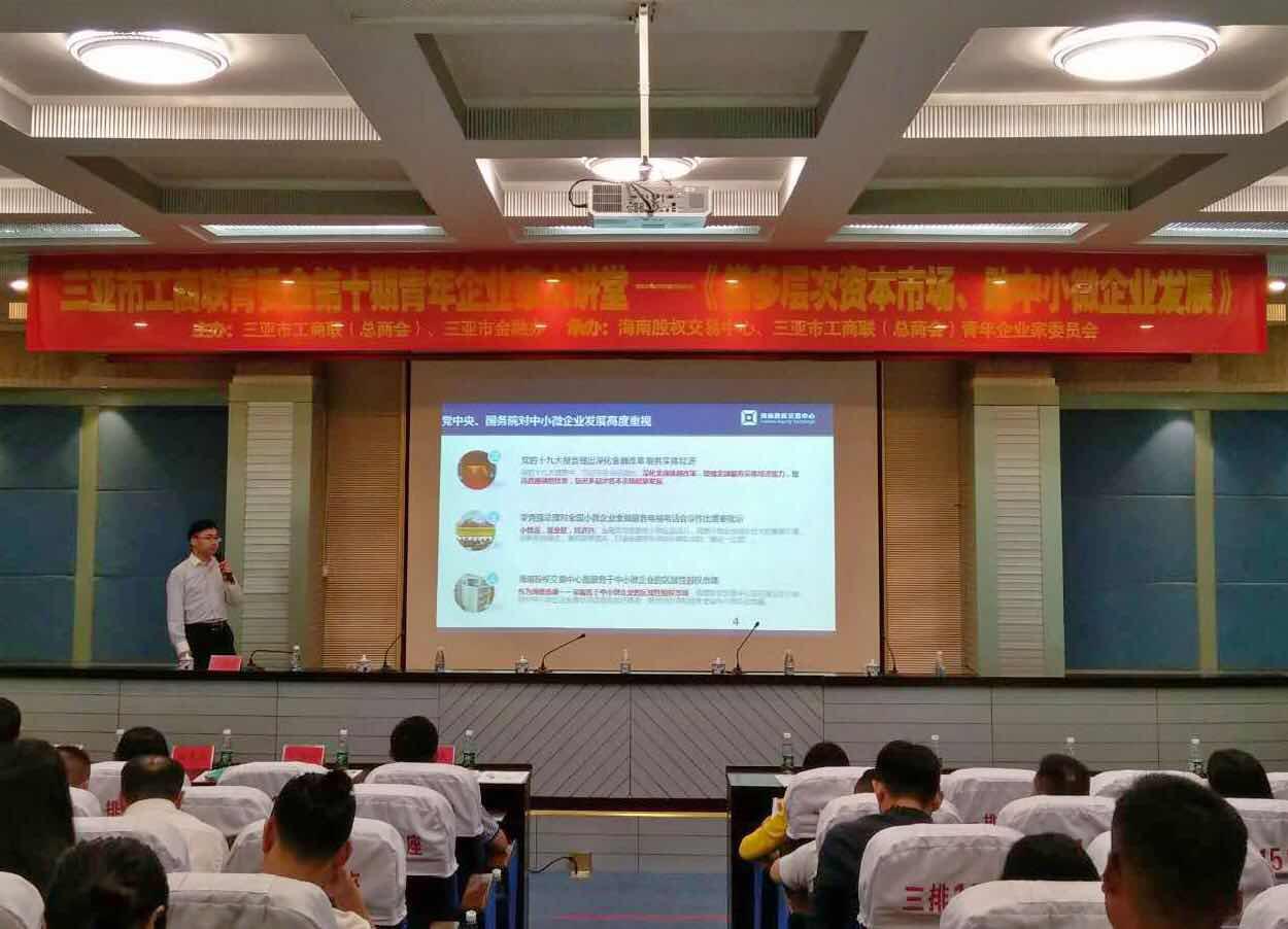 培訓(xùn)過程中,程棟才執(zhí)行總經(jīng)理以“借助多層次資本市場,助力中小微企業(yè)發(fā)展”為主題,為在場企業(yè)介紹了2017年海南省中小微企業(yè)的發(fā)展?fàn)顩r及海南股權(quán)交易中心下一步的發(fā)展目標(biāo),現(xiàn)場分析了目前的十二大重點產(chǎn)業(yè)及三亞“一支柱兩支撐”下政府產(chǎn)業(yè)政策,并就如何企業(yè)有效利用資本市場規(guī)范發(fā)展及如何快速進(jìn)入?yún)^(qū)域性股權(quán)市場展開了一系列的講解。