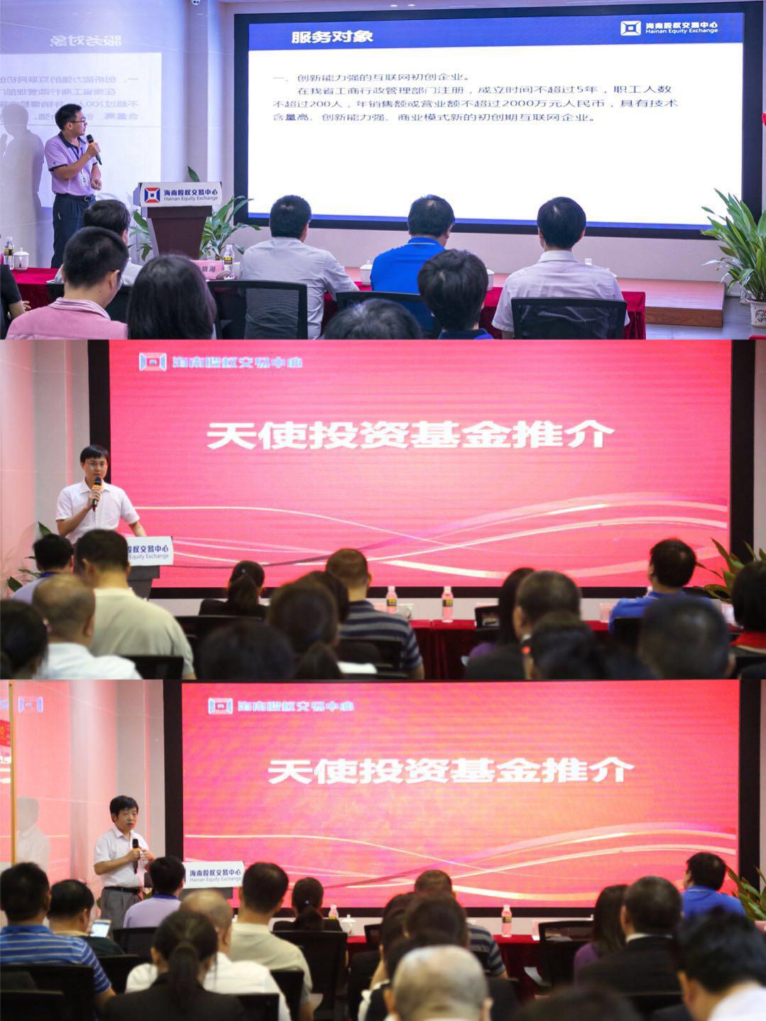 現(xiàn)場,??刭Y本及聯(lián)合資產(chǎn)對天使投資、天使投資基金等方面內(nèi)容進行了介紹,并表示,未來在進行天使投資過程中,將會優(yōu)先考慮海南股交中心“天使板”的掛牌企業(yè),同時,希望企業(yè)能夠通過“天使板”的服務(wù),規(guī)范發(fā)展。