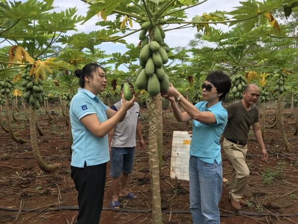為了幫助加六村貧困農(nóng)戶打開紅心木瓜的銷路,在海南控股、海南金控的指導下,海南股交在“海惠盈”平臺發(fā)起木瓜眾籌,借助微信精準營銷,在極短的時間內(nèi)完成了木瓜的銷售,助力貧困農(nóng)戶拓寬銷售渠道,實實在在增加貧困農(nóng)戶收入。這不,14日下午眾籌成功,15日一大早海南股交扶貧眾籌團隊在海南股交副總經(jīng)理兼財務總監(jiān)唐玉萍及總經(jīng)理助理卜麗麗的帶領下來到加六村,幫助農(nóng)戶一起進行木瓜采摘、分揀、優(yōu)選好果等工作,將木瓜運送至海口倉庫,為后續(xù)的發(fā)貨做準備。值得一提的是,本次海南股交發(fā)動旗下掛牌企業(yè)專業(yè)的水果貿(mào)易商海南奢旅貿(mào)易有限公司,一同幫助農(nóng)戶將木瓜統(tǒng)一包裝、打包發(fā)貨。