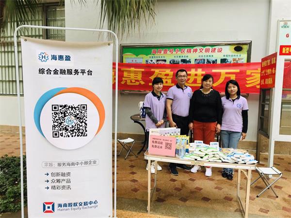近日,為滿足社區(qū)居民日益增長的金融服務需求,不斷拉近海南股交與社區(qū)居民的距離,海南股交投資者服務中心聯(lián)合海惠盈團隊開展了“海惠盈進萬家”戶外營銷活動。在加深與社區(qū)居民感情交流的同時,推進海惠盈社區(qū)金融服務,將海惠盈產品送到市民家門口,為海南股交后期的產品路演打下良好基礎,讓社區(qū)居民感受海南股交貼心的服務。