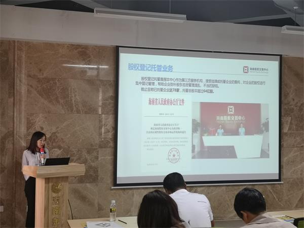 在隨后的業(yè)務宣講環(huán)節(jié),海南股交風險管理部、運營管理部、創(chuàng)新融資部就掛牌企業(yè)合規(guī)若干規(guī)定、年報披露以及股權轉讓、股權質押、定向增資、可轉債業(yè)務等內容為參會的15家企業(yè)進行了專題宣講。