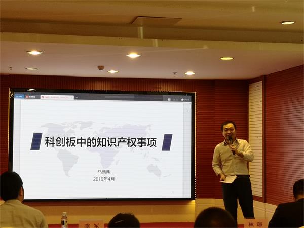 會上,海南股交培訓(xùn)總監(jiān)馮偉民、興業(yè)證券投資銀行業(yè)務(wù)總部董事副總經(jīng)理陳旸以及中金浩資產(chǎn)評估公司首席評估師馬新明三位嘉賓分別從科創(chuàng)板設(shè)立的背景、區(qū)域性股權(quán)交易市場科創(chuàng)專板建設(shè)、如何進(jìn)行知識產(chǎn)權(quán)保護(hù)、知識產(chǎn)權(quán)風(fēng)險防范、知識產(chǎn)權(quán)金融創(chuàng)新服務(wù)等幾個方面對科創(chuàng)板上市規(guī)則和知識產(chǎn)權(quán)在科創(chuàng)板中的地位進(jìn)行了詳細(xì)而深入的解讀。