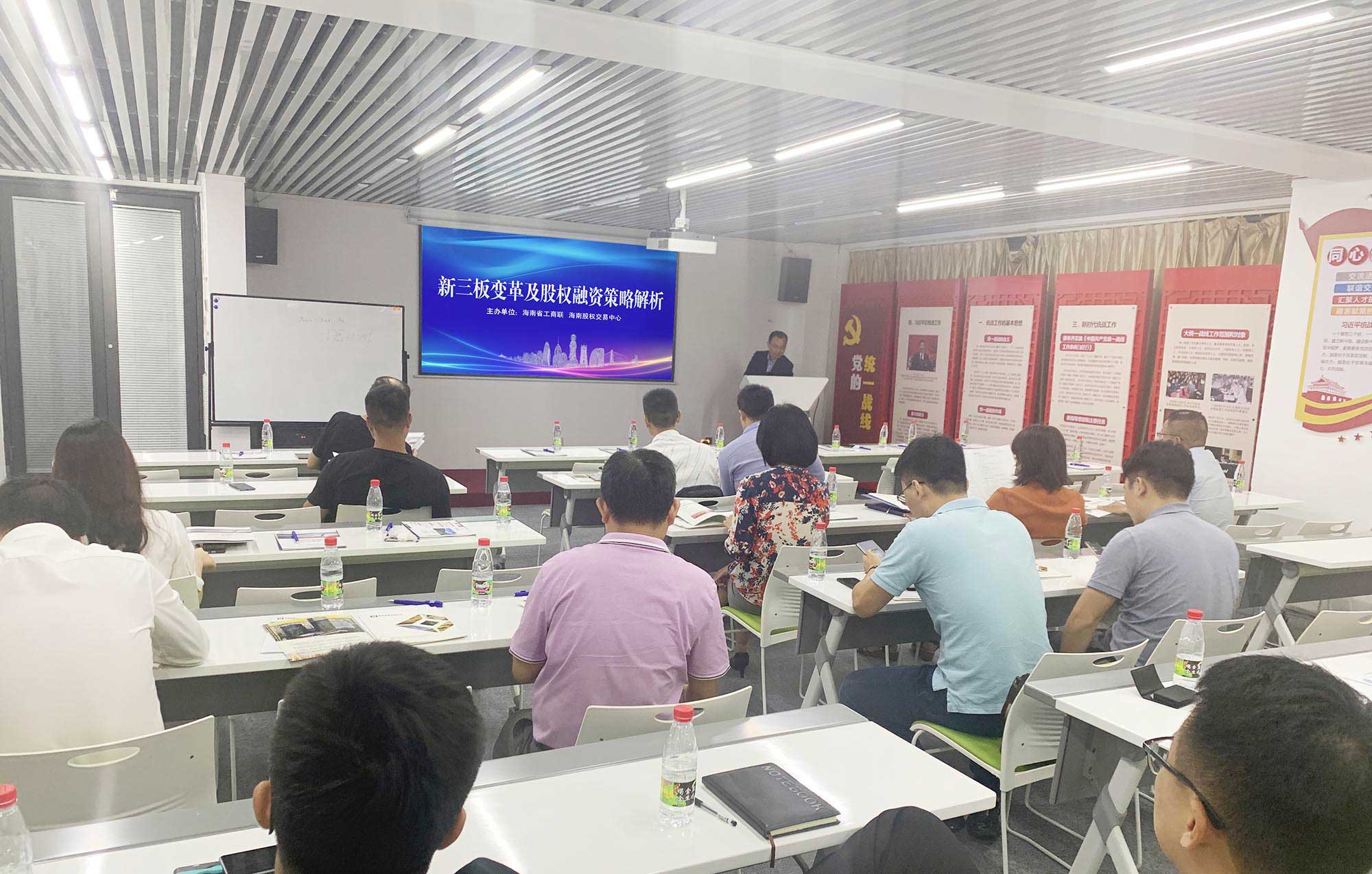 為促進我省中小企業(yè)把握當(dāng)前多層次資本市場特點和國家政策方向,提升戰(zhàn)略決策能力并做好資本路徑規(guī)劃,由海南省工商聯(lián)、海南股權(quán)交易中心聯(lián)合主辦的“資本市場最新情況解讀---新三板變革及股權(quán)融資策略解析”專題講座在海口濱海國際電子商務(wù)產(chǎn)業(yè)園如期舉行,海南本地40余家企業(yè)參加本次活動。