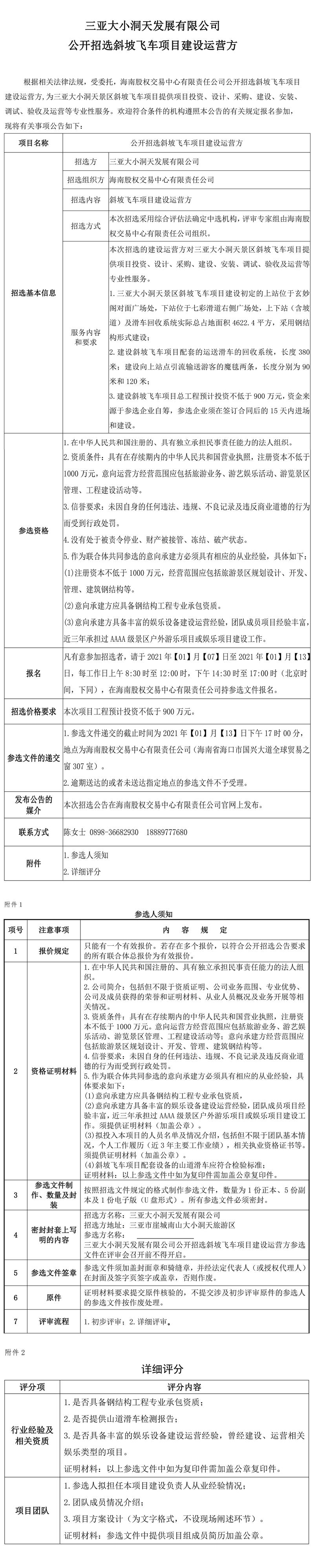 關(guān)于三亞大小洞天發(fā)展有限公司公開(kāi)招選斜坡飛車項(xiàng)目建設(shè)運(yùn)營(yíng)方的公告