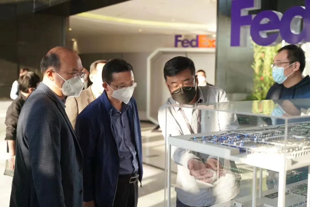 ▲圖:周軍平一行在浦東機場PACTL貨站參觀沙盤模型