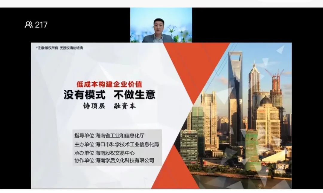 此次活動是海口市優(yōu)化中小企業(yè)發(fā)展系列培訓活動的第三期活動,得到了海南省工信廳的指導和支持。活動采取“線上+線下”的形式開展,本次系列活動共舉辦10場,累計線下參會企業(yè)達300余家,線上直播217人次參與培訓。