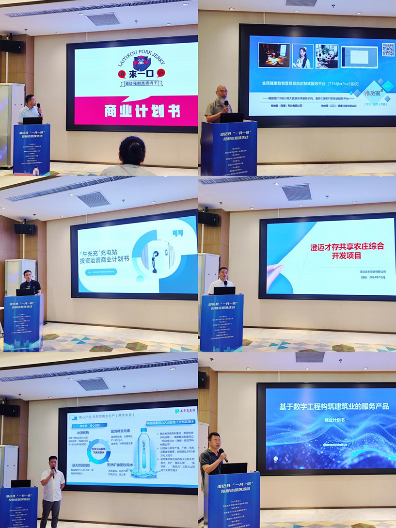 投融資路演環節,海南澄邁來一口生態農業發展有限公司、他她蜜(海南)科技有限公司、海南騰龍凱悅科技有限公司、澄邁遠豐實業有限公司、海南泰新電氣成套設備工程有限公司、海南天鴻實業股份有限公司等六家優質企業分別進行了精彩的現場路演,各項目代表依次圍繞企業背景、項目方向、研究成果、應用前景及融資規劃等內容對企業的創新成果和發展潛力進行了展示。