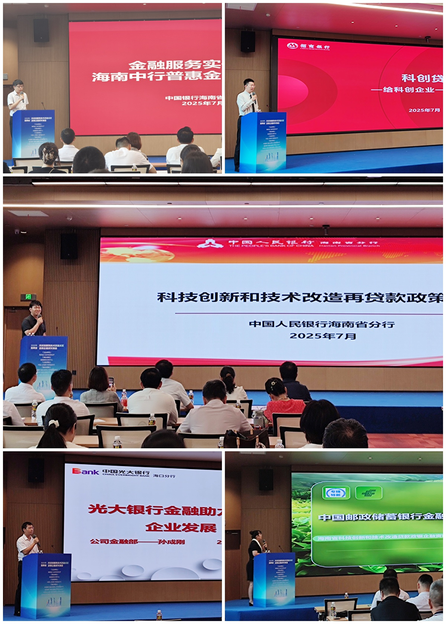 中國人民銀行海南省分行介紹了科技創新和技術改造再貸款相關政策,為企業拓寬融資渠道提供有力支持。同時,各金融機構結合自身業務特色,推出多樣化金融產品和服務方案,涵蓋科創貸、中長期項目貸款、稅務貸款等多個維度,滿足不同類型企業的融資需求。在交流環節,與會嘉賓就融資需求、信貸產品、合作模式等展開了深入探討,并達成了初步合作意向。