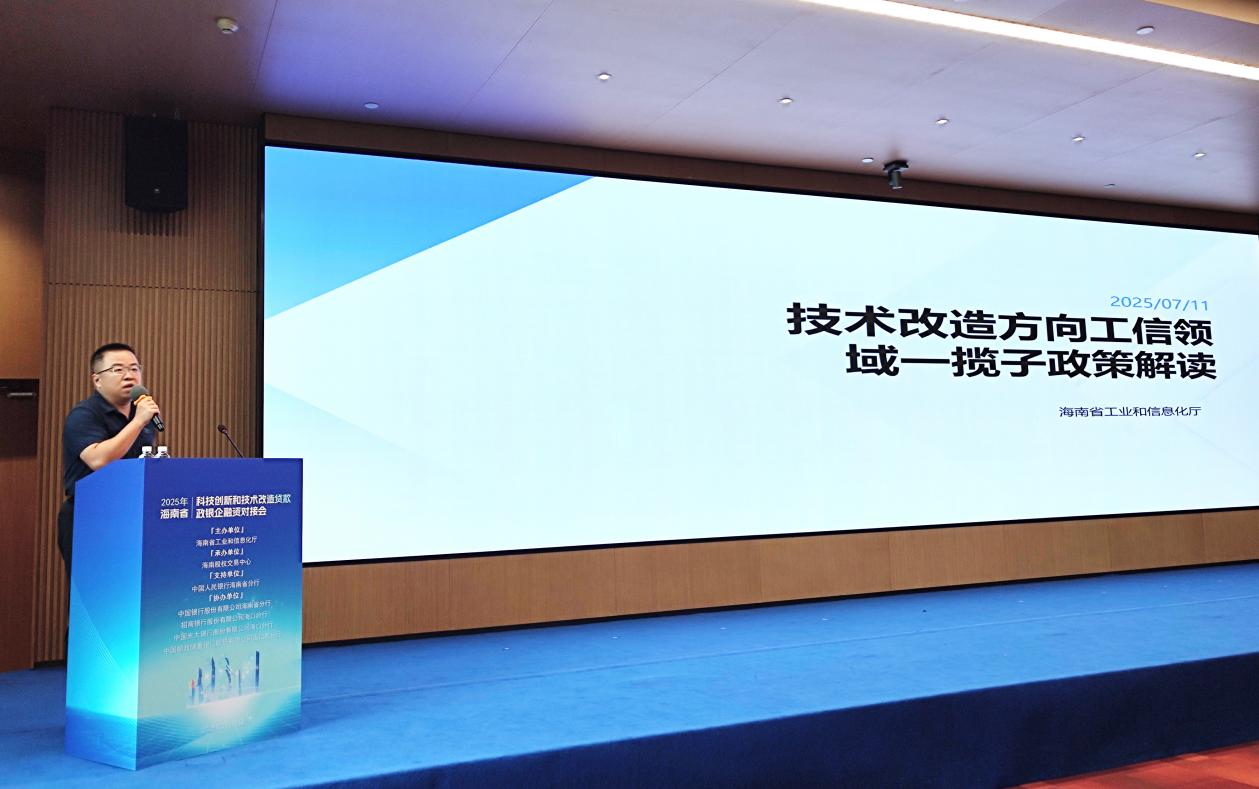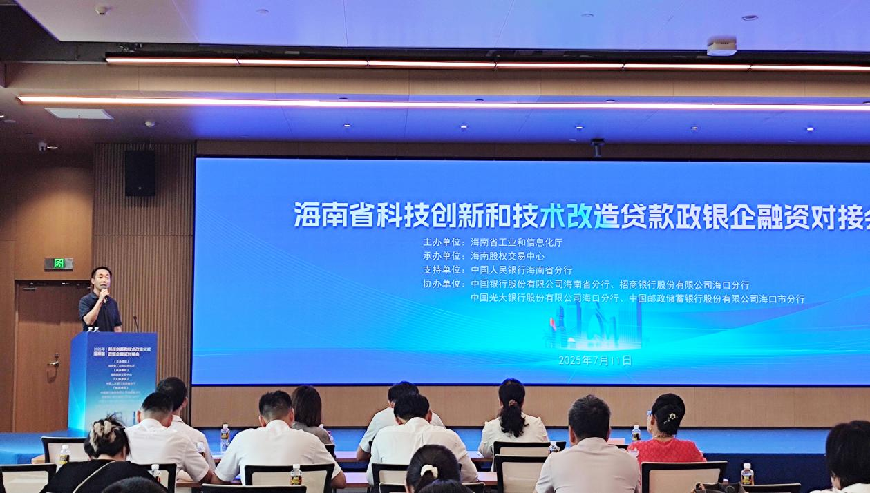 7月11日,海南省科技創新和技術改造貸款政銀企融資對接會在海口順利舉行。此次活動由海南省工業和信息化廳主辦、海南股權交易中心承辦、中國人民銀行海南省分行提供支持,旨在深入貫徹落實創新驅動發展戰略,推動金融資源精準支持實體經濟,為科技型企業和技術改造項目提供更加堅實的融資保障。來自海南省工信領域的重點企業代表、專精特新中小企業、創新型中小企業負責人以及多家金融機構代表共計七十余人齊聚一堂。各方圍繞科技創新、技術改造與金融服務的深度融合展開交流,共同探討如何構建高效協同的政銀企合作機制,打通科技創新與技術改造融資“最后一公里”。